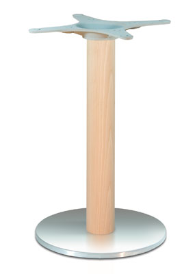 Basis + runde Säule Edelstahl gebürstet + Buchenholzsäule , höhenverstellbar mit 4 Stellschrauben