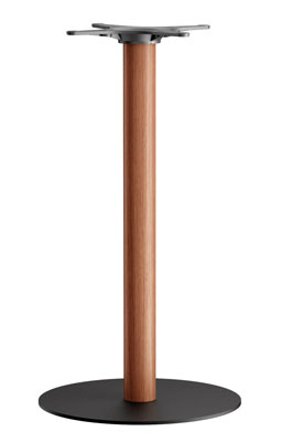 Basis + runde Säule Stahl in schwarz+ Buchenholzsäule, höhenverstellbar mit 4 Stellschrauben