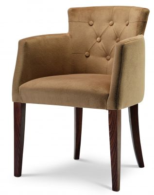 Stuhl gefertigt in Buche, verschiedene Beiztöne zur Auswahl. Bezogen in Kunstleder oder Polsterstoff nach Kundenwunsch.