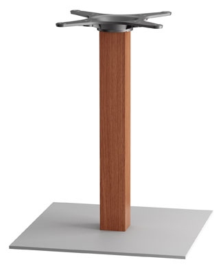 Basis + quadratische Säule Stahl in Alufarben + Buchenholzsäule, höhenverstellbar mit 4 Stellschrauben